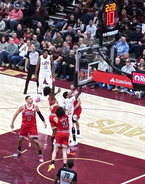 Tyrese Proctor got the start in place of Mitchell and took advantage right away as he drained a three just 38 seconds into the game to give the Cavs an early 3-0 lead. Then with 9:58 left in the quarter he struck again hitting second three, giving the Cavs an 8-0 lead. Bulls coach Billy Donovan took an immediate timeout. The timeout might not have worked because the Bulls failed to score on their next possession and then Darius Garland hit a three giving Cleveland an 11-0 lead with 9:38 left on the clock. With 8:38 left on the clock, Jaylon Tyson was called for a foul on Matas Buzelis, replay showed that Tyson never touched him, but no harm was done as Buzelis missed both free throws. With 7:17 left in the quarter the Bulls pulled to within two points at 13-11 when former Cav Isaac Okoro drained a three. It was a very odd moment before the game when the Bulls starters were announced and Okoro received large ovation from the very same fan base that criticized him the entire time he was a Cavalier. The Bulls then tied the game 13-13 with 6:45 left and Kenny Atkinson called a timeout. The Bulls were on a 13-2 run. The Bulls took their first lead of the game came at the 5:31 mark when Tre Jones drained a three from in front of the Cavs bench. The Cavs offense picked up the pace and then with 2:16 left in the opening quarter Proctor found Thomas Bryant under the basket to give the Cavs a 26-19 lead. The Bulls responded with the next six points to cut the Cavs lead to one point. With :50.1 left in the quarter Proctor was belted across the face by Zach Collins, he hit one of two free throws to give the Cavs a 29-27 lead. After the Bulls tied the game at 29, Ball hit a three with :29.1 left to give the Cavs a 32-29 lead and then Collins tied the game at 32-32 when the quarter ended. Garland led all scorers after one quarter with 11 points. Buzelis and Jones led the Bulls with eight points apiece. The battle of the boards was even in the first as each team had 12. The Cavs outshot the Bulls from the field 48% (11 of 23) to 46% (11 of 24).