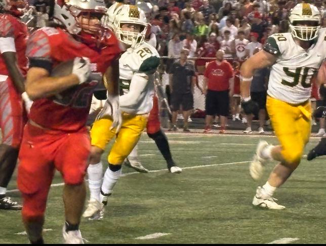After holding Medina (2-3) to a three-and-out following the opening kickoff, the Cardinals took possession at the Bees’ 37 yard line following a short punt of only 17 yards. Three plays later, senior running back Jackson Farley, who committed to Kent State earlier this month, went in from 25 yards.